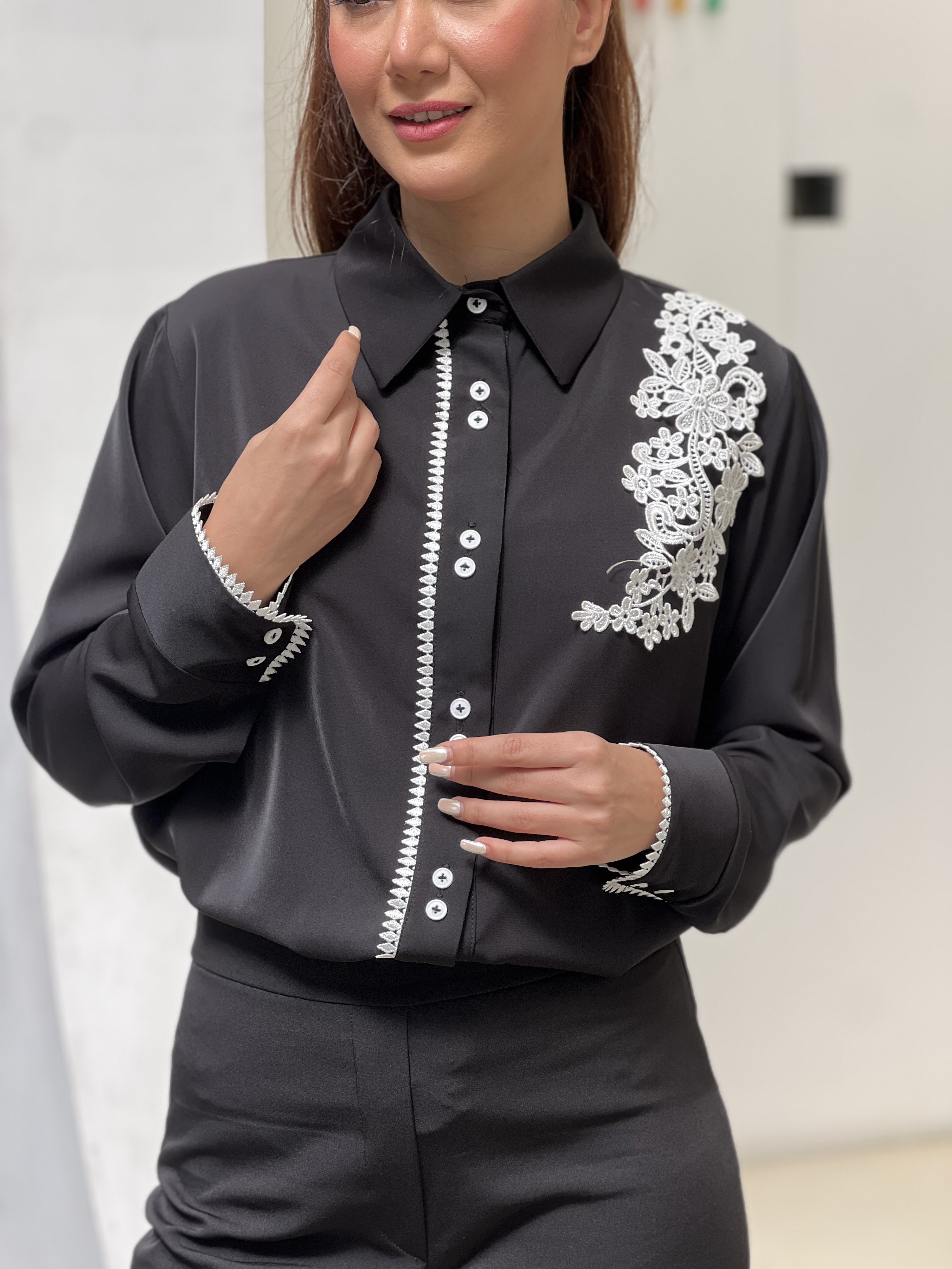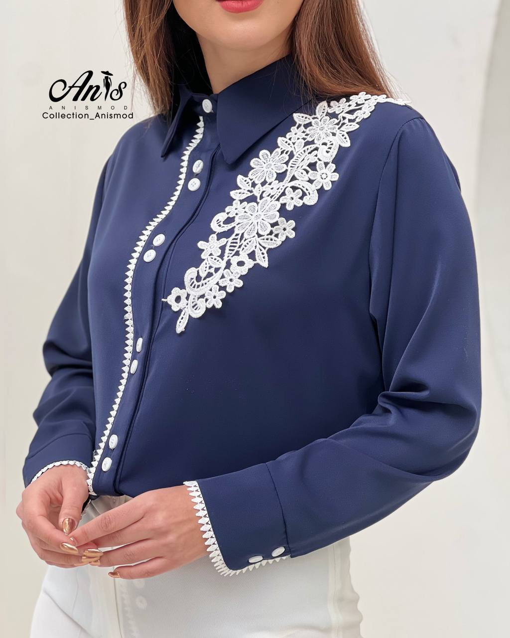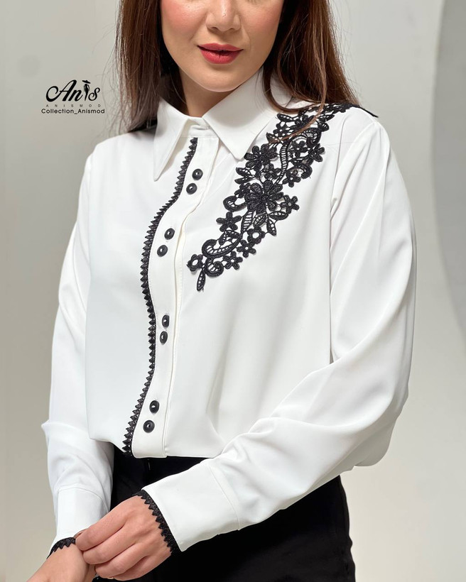 متاسفانه این کالا در حال حاضر موجود نیست. میتوانید از طریق لیست بالای صفحه، از محصولات مشابه این کالا دیدن نمایید.شومیز مدل سرشانه گیپور جلو دکمه